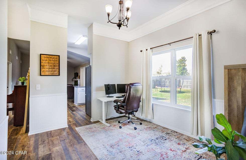 Check out this beautiful home in Callaway, just minutes from TAFB. This home has an impressive floor plan with a formal living or dining area just inside of the front door, luxury vinyl plank throughout, and a gourmet kitchen with a gas stove overlooking the HUGE fenced backyard. Pets are negotiable. The den area has a cozy brick fireplace and 10ft ceilings. Bedrooms are ample in size with a split floor plan. You will LOVE the huge laundry room and the backyard has a nice shed to store your things! Want to see this beauty? Text a photo of your driver's license to the OFFICE phone number, along with the address of this home and we will get your showing set up within 1 day!